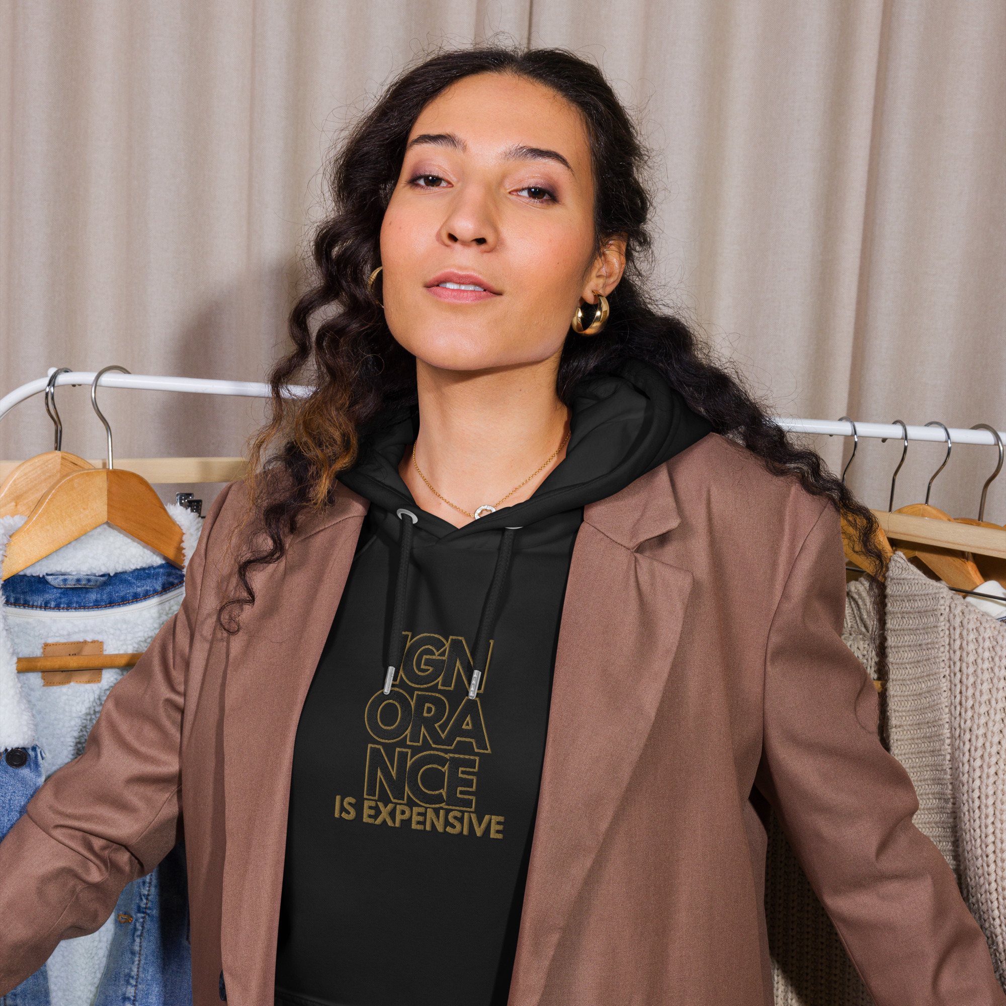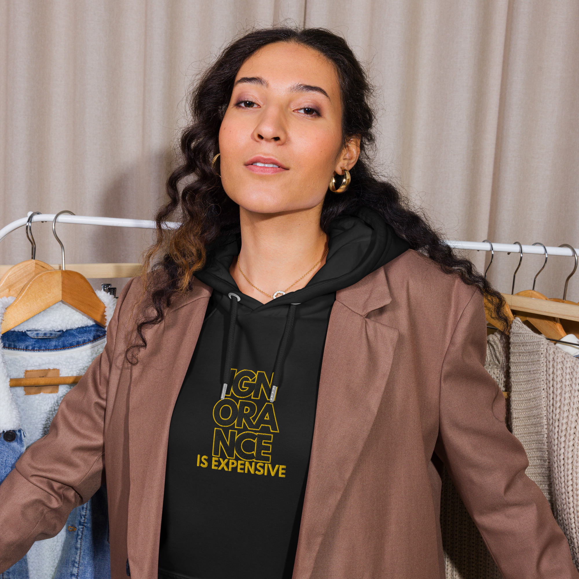 If thereโs one fashion rule to live by, let it be that comfort doesnโt have to be compromised for the sake of style. Pair our Black Unisex Hoodie with joggers for a relaxed look, or elevate the outfit with a skirt, oversized blazer, or classic trousers. This hoodie is brushed inside ensures a comfy and snug feel, and will keep you warm during the colder days.